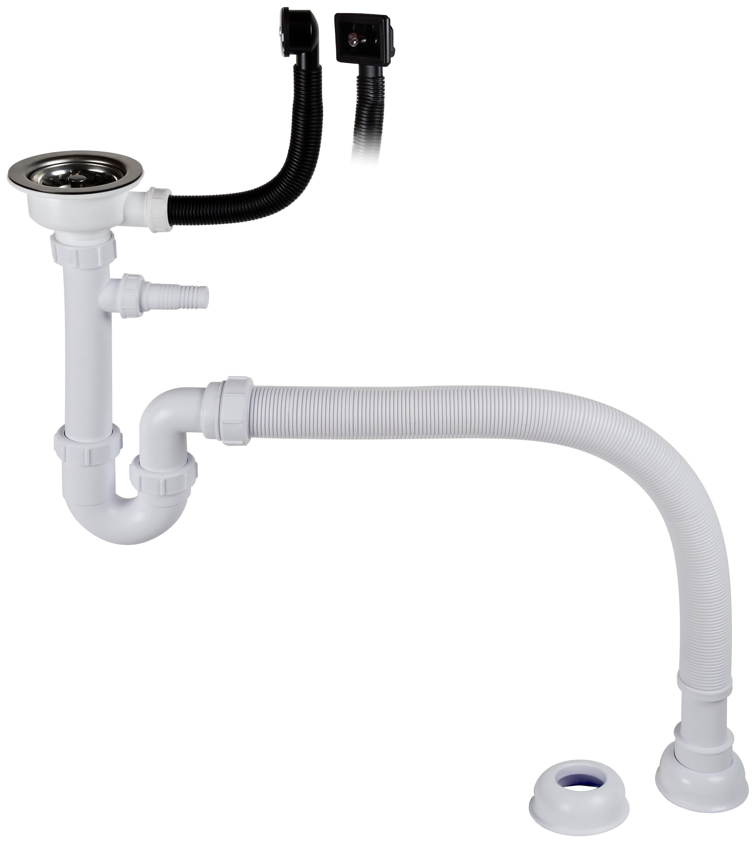 Gelia 3011132201 Vattenlås m. korgventil, bräddavlopp För diskbänk med 1 ho
