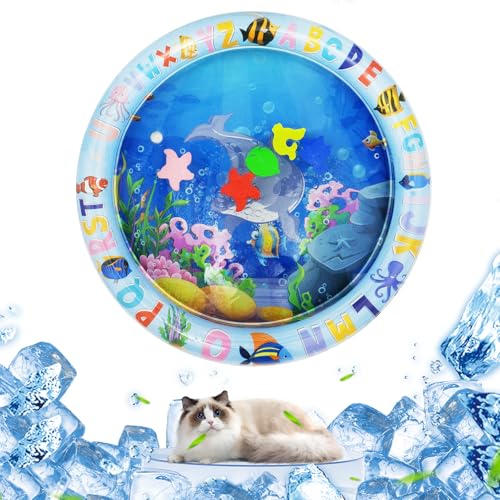 Hailerio Sensorisk vattenlekmatta för katter, sensorisk vattenmatta för katter, vattenfyllbara kylmattor för katt och hund, tjock lekvatten, sensorisk dyna, interaktiva kattleksaker för inomhuskatter