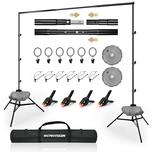 BENOISON Bakgrundsstativ - 2,6×3m Fotografi Foto Bakgrundsstativ, Justerbart Bakgrundsstativ Förtjockad Robust med Vattenpåse (Svart)