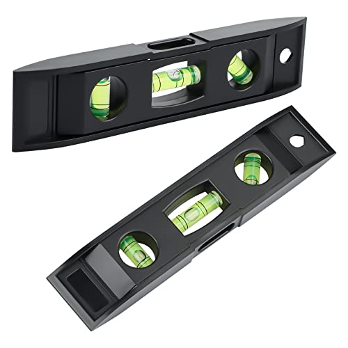 Vattenpass liten, 2 stycken, RUNEAY 153 mm vattenpass med magnet torpedo-vattenpass med 3 trollsländor 45° 90° 180° (svart)