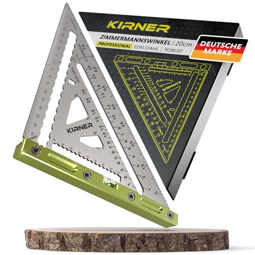 KIRNER Snickarvinkel 180 mm – exakt stoppvinkel metall av rostfritt stål med innovativ bas och vattenpass – ritverktyg, vinkelmätare och snickarvinkel | snickarvinkel i ett verktyg