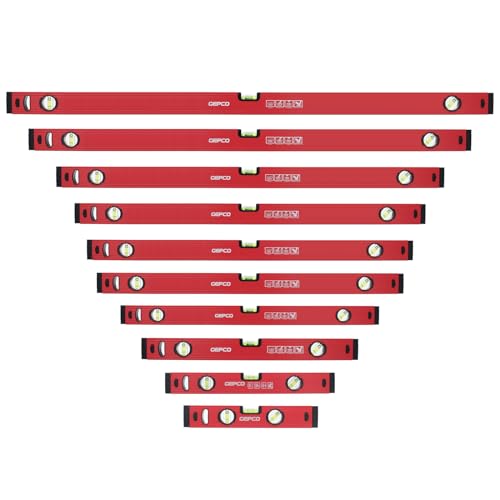 GEPCO 10-delad uppsättning professionella vattenpass 30-40-50-60-80-90-100-120-150–180 cm aluminium 1,2 mm riktvåg mätvåg byggskala 3 trollsländor