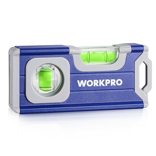 WORKPRO Magnetisk vattenpass 115 mm, mini vattenpass med 2 flaskor 90°/180°, magnetisk vattenpass med hängande hål, aluminiumlegering kropp, stark magnet, räfflad design för byggare