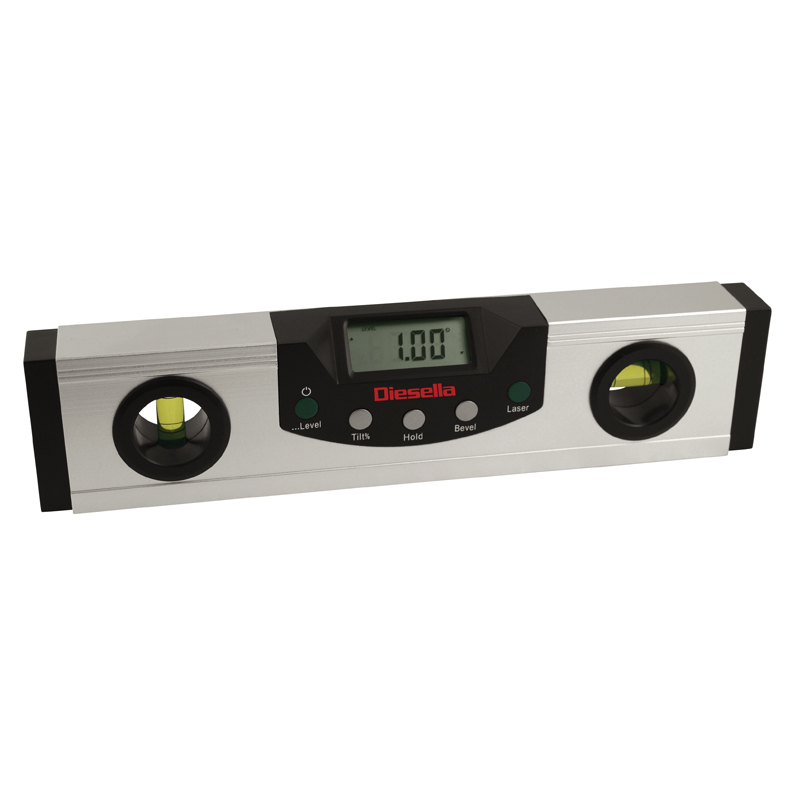 Digitalt vattenpass 230 mm/0,05° med +-laser och LED-ljus