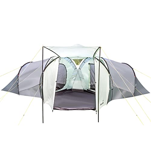 Skandika Kambo Tunneltält för 6 personer, med sovhytt för 6 personer, vattentät med 3 000 mm vattenpelare, 2 m ståhöjd, 3 ingångar, soltak, förtält, campingtält