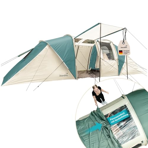 Skandika Kupoltält Bern | Campingtält för 4 personer med panorama takfönster, 2 sovkabiner, golvbadkar, 2 m ståhöjd, vattentät, 4000 mm vattenpelare | Stort utomhusfamiljetält, campingtält
