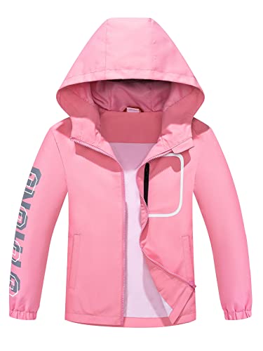 ALXHUTE Regnjacka för barn, vattenpelare, pojkar, flickor, övergångsjacka, funktionell jacka med huva, ROSA, 140