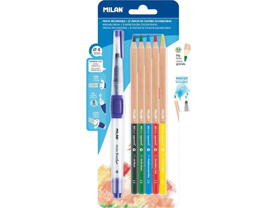 Milan Vattenpensel + 5 Vattenfärgspennor Blister