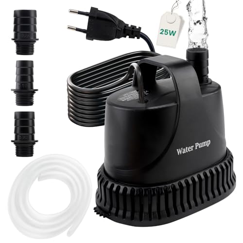 EXLECO Akvariump 1500L/H 25 W dränkbar pump 230 V mini vattenpump filterpump utomhus fontän pump mycket tyst bassäng, vakuumpump källare med 2 m kabel