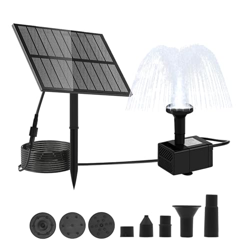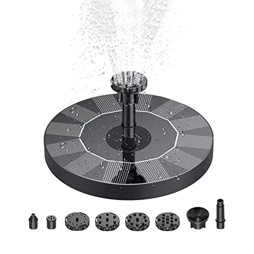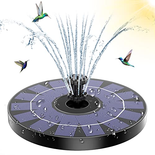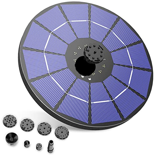 AISITIN Fontän med 3,5 W solpanel, dammpump, inbyggd 1 500 mAh batteri, vattenpump, flytande fontän, pump med 6 fontänstilar för trädgård, fågelbad, fiskbehållare