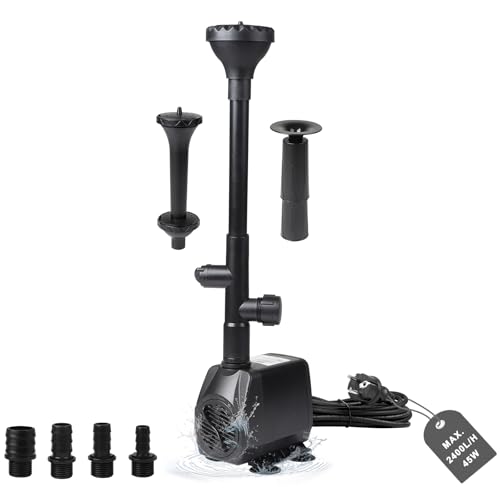 EXLECO Fontänpump Dammpump 2500L/H Vattenpump Pumpar Ström 45W Akvarium Pump Filterpump Vattenpump Fontän Dammar med 4 Munstycken, 5M Kabel, 3 Fontänstilar