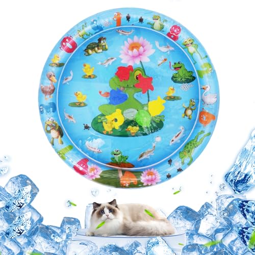 OSDUE Vattensensor lekmatta för husdjur, förtjockad uppblåsbar vattensäng med interaktiv fiskdesign, cool komfortmatta för katter och hundar – groda