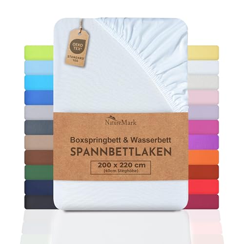 NatureMark Basic resårsäng och vattensäng resårlakan 200 x 220 cm – 40 cm – 200 x 220 cm spännlakan – 100 % bomull, vit
