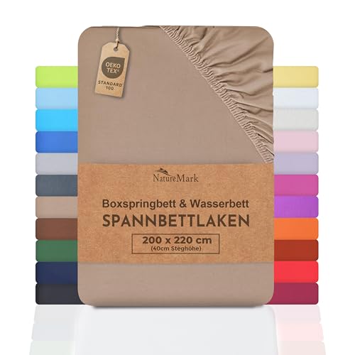NatureMark Basic resårsäng och vattensäng resårlakan 200 x 220 cm – 40 cm – 200 x 220 cm spännlakan – 100 % bomull, sand/beige