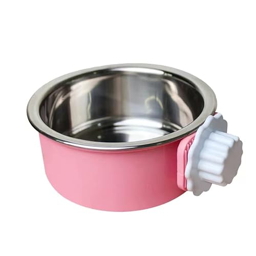 Angeer 2 st/set 2-i-1 rostfritt stål hängande skål för husdjur avtagbar hundskål för lådor valp matare vattenskål med bulthållare hund (rosa) - liten)