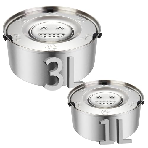 PETTOM Inget spill hund vattenskål 3 L stor kapacitet, 304 rostfritt stål anti-droppe hund vattenskål, hög hund vattenskål stänksäker, flytande vattenskål för hundar som dricker