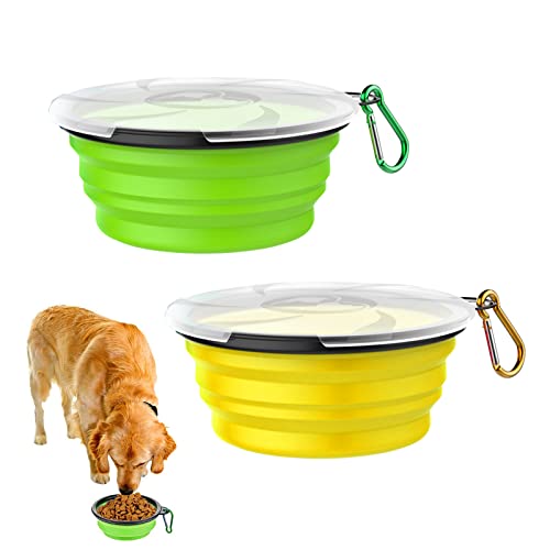 2 st 350 ml hund reseskålar, silikon vikbara foderskålar, reseskålar, bärbar silikon, läckagesäker drickskål, matskål, vattenskål, hundar på väg, silikonutfodring, hundskålar, med lock, karbinhake, kiuiom