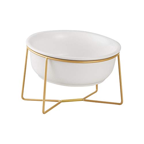 HCHLQLZ Vit stor keramisk lutad förhöjd katt hundskål upphöjd kattmat vattenskål skål skål husdjur komfort matskålar med guldjärnstativ