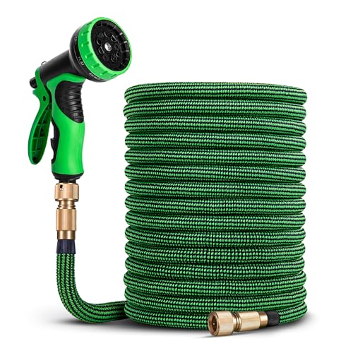 HOMEPROTEK Utdragbar trädgårdsslang 30 m - justerbar vattenslang med 1/2 tum och 3/4 tum (19 mm och 13 mm) adaptrar, 9 sprinklerlägen, hållbar latex, med mässingsbeslag och påse