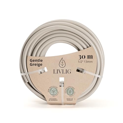 LIVLIG Trädgårdsslang 30 m, trädgårdsslang 1/2 tum tillverkad i Tyskland, vattenslang 30 m av återvunnen PVC, formstabil, färg: grepp