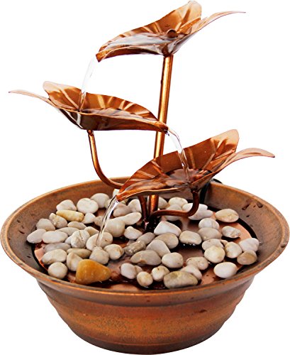 dobar® Design inomhusfontän – bordsfontän i metall i tre nivåer – liten fontän – dekorativt vattenspel för vardagsrum/kontor/inomhus – dekorativ fontän – 22,5 x 23,5 cm – brons