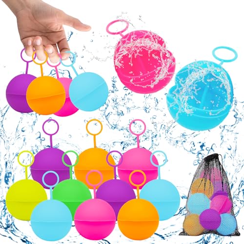 Vattenbomber återanvändbara, 12 stycken silikonvattenballonger med dragring, återanvändbara påfyllningsbara vattenbomber, utomhus vattenspel för poolfest, sommarlekar barn vuxna