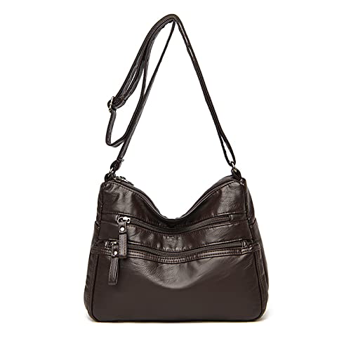Porrasso dam axelväska multiväska vattentät axelväska messengerväska PU handväska för arbete resor shopping dagligt bruk, BRUN, L, Vintage