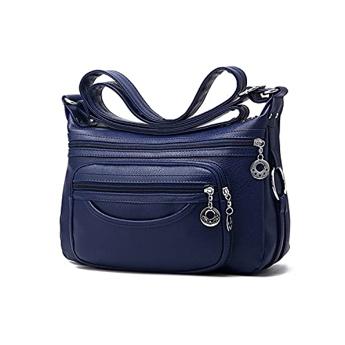 PORRASSO Dam axelremsväska med flera fickor vattentät axelväska, PU budväska, handväska för arbete, resor, daglig användning, blå, L