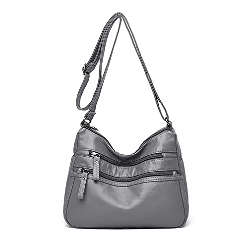 Porrasso dam axelväska multiväska axelväska läder vattentät handväska axelväska för arbete resor shopping dagligt bruk, GRÅ, L, Vintage