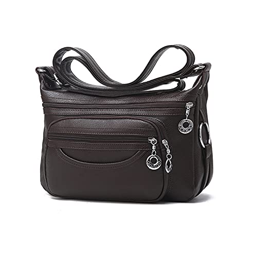 Porrasso dam axelväska multiväska axelväska läder vattentät handväska axelväska för arbete resor shopping dagligt bruk, BRUN, L, Vintage