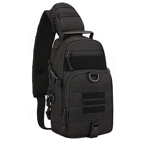 VINBAGGE Militär bröstväska, taktisk slingryggsäck, molle axelväska, liten axelväska, vattentät, utomhus, crossbody, dagryggsäck för vandring, cykling, vandring, män, kvinnor, D-Black, 32 * 20 * 5 cm