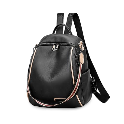 Estwell dam stöldsäker ryggsäck handväska damryggsäck mode PU-läder axelväska vattentät resa dagväska avslappnad skolväska, Svart, M