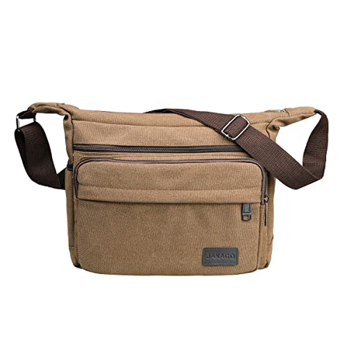 JAKAGO Vattentät axelväska för män, multiväska av duk, arbetsväskor för män och kvinnor, för utomhus, camping, resor, arbete, daglig användning, BRUN, 30 cm * 13 cm * 24 cm