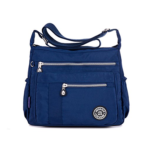 Wination Nylon axelväska, flera fickor större kapacitet handväska ledig crossbody handväska vattentät nylon axelväska för kvinnor och män