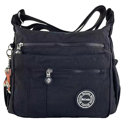 NOTAG Crossbody väska för kvinnor, vattentät nylon axelväska flera fickor crossbody handväska med RFID-plånbok, Svart, Large