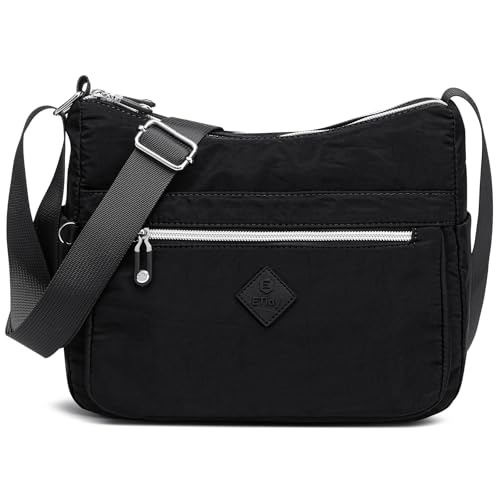 ETidy Crossbody väska för kvinnor vattentät lätt ledig axelväska handväska bokväska, Svart, Medium