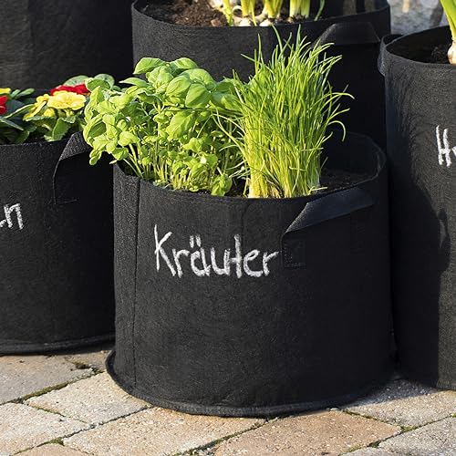 Meister Växtpåse 43 liter – 10 gallon – 45 x Ø 35 cm – 5 stycken – luft- och vattentät – filt/växtsäck/potatis-växtpåse/filtväxtväska/9960590