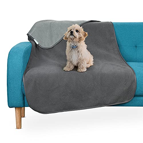 Pawsee vattentät hundfilt, husdjurstäcke, vattentät filt, soffa, valp, katt, fleece, överkast, säng, bilstol, möbler, skydd, stor 125 x 75 cm, grå