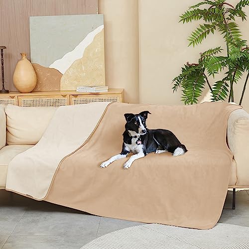 Bedding Aid Vattentät Reversibel Filt, Utmärkt Läckage-Säker Skyddande Överdrag för att Skydda Sängmadrass, Soffa, Soffa från Urin & Spill från Vuxna, Barn, Hundar, Djur (Beige/Gråblå, 203x229cm)