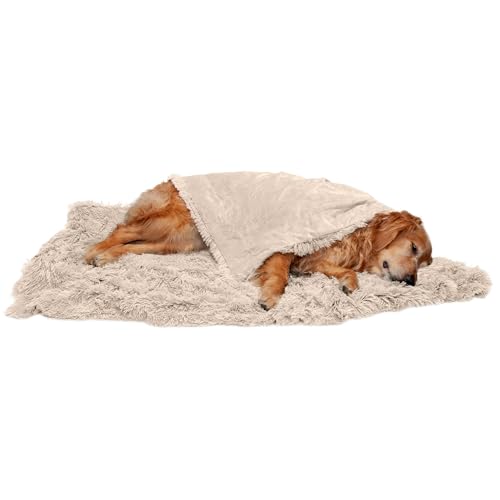 Furhaven Filt, vattentät, för hundar och inomhuskatter, tvättbar, av lurvig plysch, lugnande lång fuskpäls och sammet, hundfilt, brungrå, extra stor/storlek XL (färg kan variera)