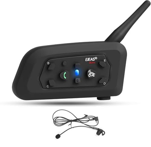 EJEAS V6C Fusball domare headset Intercom, Bluetooth-kommunikationssystem för 2 till 6 personer med en räckvidd på 1 000 m, DSP brusreducering, vattentät, 1 st