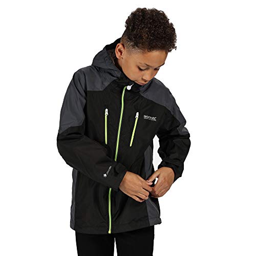 Regatta Barn Junior Calderdale' nätfodrad vattentät andningsbar jacka med huva Black/Seal Grey M