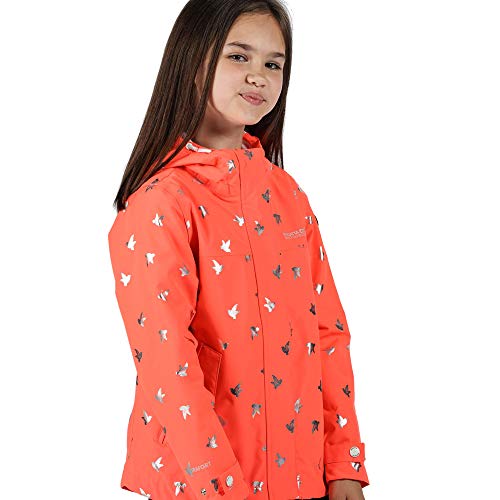 Regatta barn Bibiana' vattentät helt fodrad jacka med huva med reflexskal Fiery Coral Foil Bird 4XL