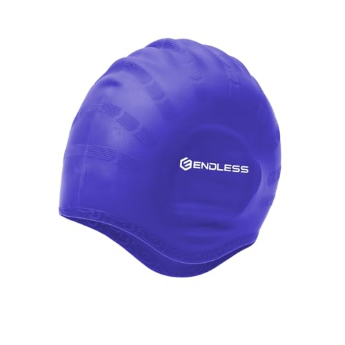 Endless EL1023 Bekväm silikon simmössa med ergonomiska öronfickor | blå | material: silikon | helt elastisk vattentät keps för lång och kort hår med tjock kant | för kvinnor och män