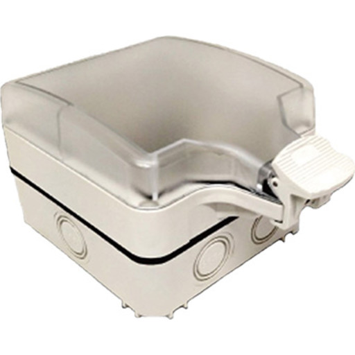Vattentät och transparent låda för strömbrytare eller uttag, lämplig för ett EU-uttag av standardtyp.