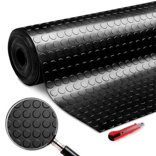 Halkfri gummigolv, gummimatta, rulldesign, cirkeldesign 1 m (bredd) x 50 cm tjocklek 3 mm, skåpbil, PVC verkstad, halkfri golv, vattentät matta och lätt att rengöra.