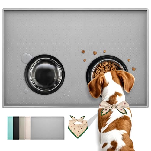 Conlun Matta i silikon för hundmat och kattmat, gummimatta, halkfri design, 100 % vattentät matta för husdjursmat med upphöjd kant, förhindrar spill, tål diskmaskin, lätt att rengöra, torkar snabbt