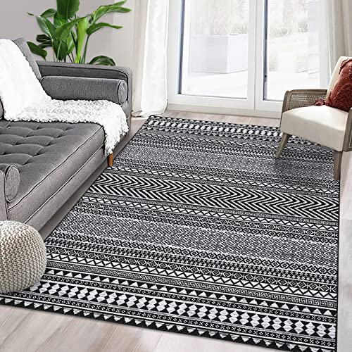 LuxFocus Vattentät matta, marockansk boho Home Deco matta, tvättbar olje- och smutsavvisande för vardagsrum sovrum matsal halkfri matta, 160 x 230 cm, svart