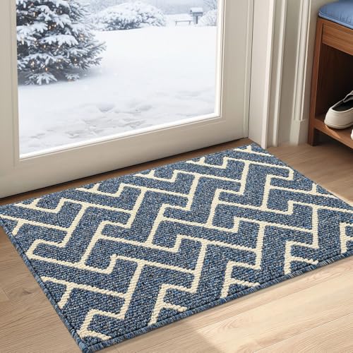 Biscpro Dörrmatta inomhus 50 x 80 cm, vattentät dörrmatta smutssamlande matta, halkfri golvmatta inomhus, tvättbar entrématta inomhus, dörrmatta, inomhus, hall, trädgård (blå)