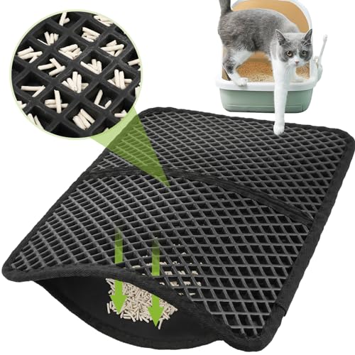 Pecute Kattlåda, matta kattströ, dubbla lager, kattmatta, kattlåda, vattentät urinresistent matta, kattlåda, vikbar kattlåda, matta med stora bikakshål 33 x 46 cm, svart